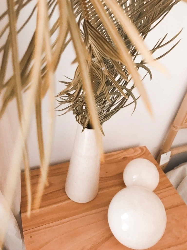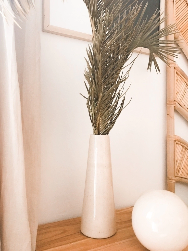 Jarrón de cerámica apto florero color natural. Medidas 24 cms de alto y 10 cms de diámetro.