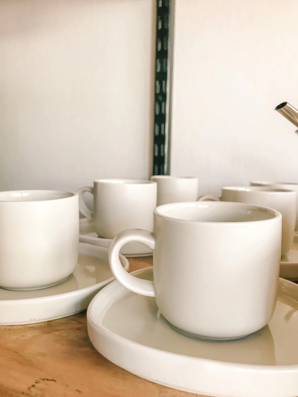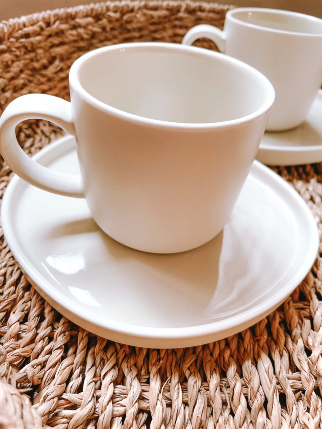 Juego de 6 pocillos y 6 platitos cerámica color mide.
